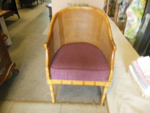 Occasional Chair w/Woven Rattan Back.