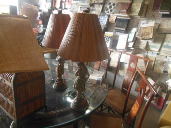 SET OF TWO - Hulu Girl Lamp w/Reed Shades.