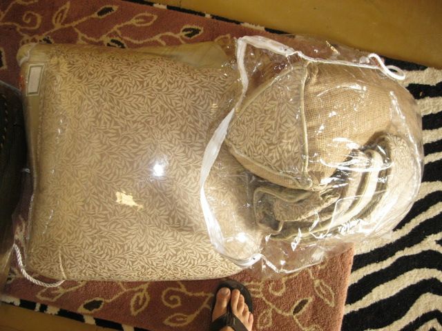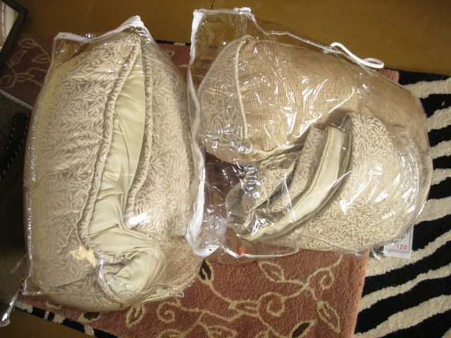 Eastern accents Queen duvet set w/3 pillows. Bed skirt, Duvet, 2 pillows, bolster. Queen size. Beige. New.