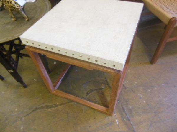 20'' x 20'' Wood Table w/Canvas Top, Nail Head Trim.