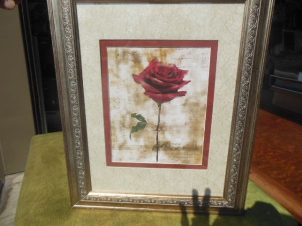 15.5''W x 19.5''H Gold Framed Single Rose Picture.