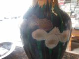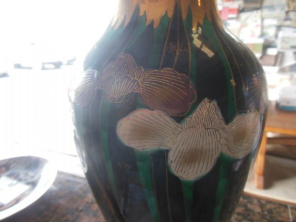 24''H Lamp Base - Exquisite Floral Design, Black Asian Style Wooden Base.