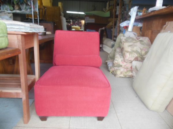 Modern Armless Chair with Attached Bolster - RED! - 26''W x 33''D x 32''H.