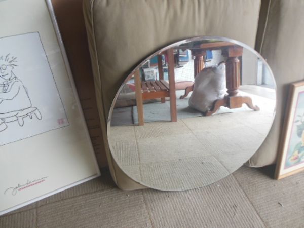 30''dia Beveled Mirror Mounted on Wood Back (OLD!).