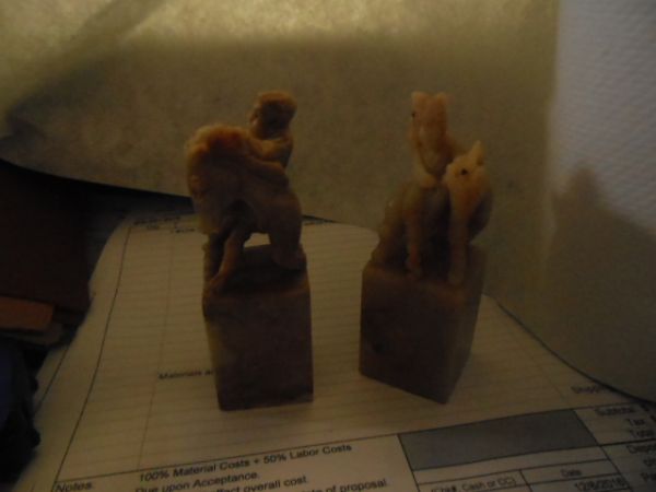 SET OF TWO - Chinese Statues on Blocks (Uncarved Chops).