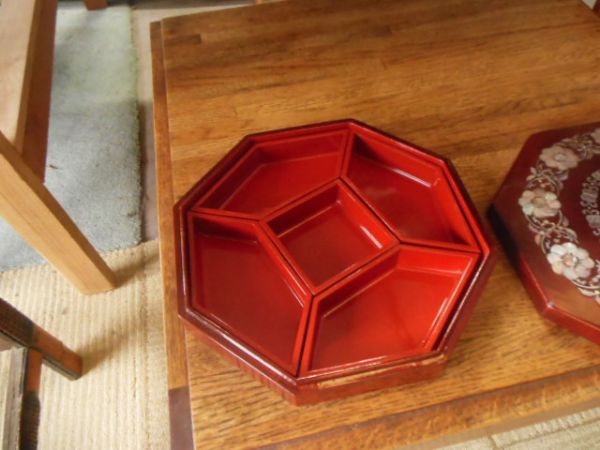 Lacquer and Mother of Pearl Wedding Box w/Divided Inserts.