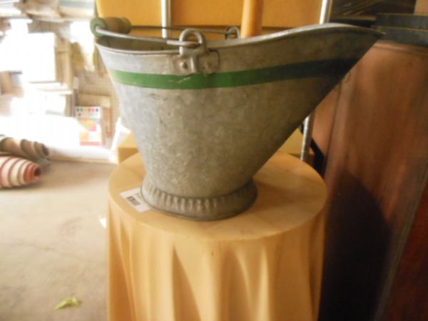 Galvanized Coal Bin - Antique! Green Stripe.
