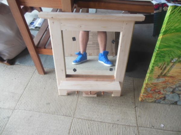 24'' x 27.25''H Handmade, Rustic Mirror with Hanging Pegs.
