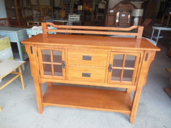 54'' x 18'' x 40''H Mission Style Buffet/Server w/Two Glass Doors, Two Drawers.