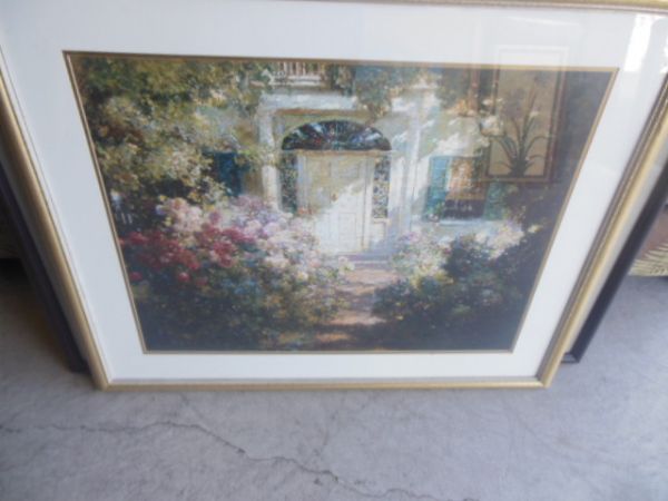 36.25'' x 30.75'' White Door with Garden View Painting.