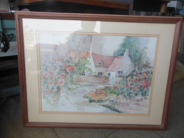 Watercolor Peach English Garden Cottage - 26.5'' x 34.25''.
