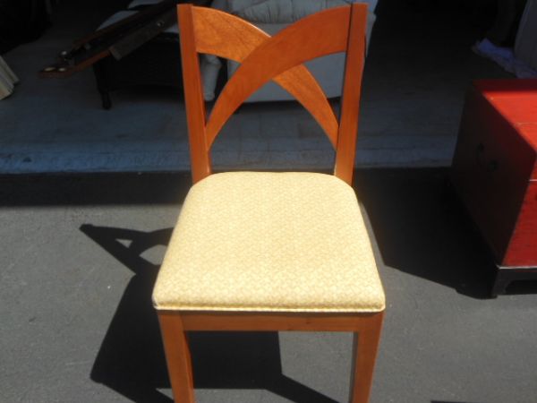 Side/Desk Chair w/Wooden Back, Yellow & Brown Seat.
