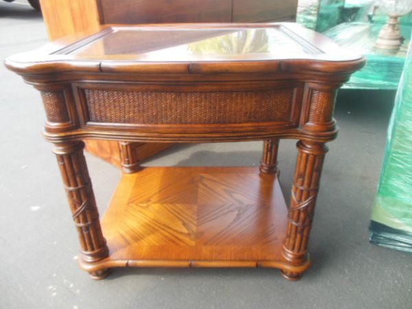 American Signature West Indies Collection - Wood End Table w/Weave Under Glass.
