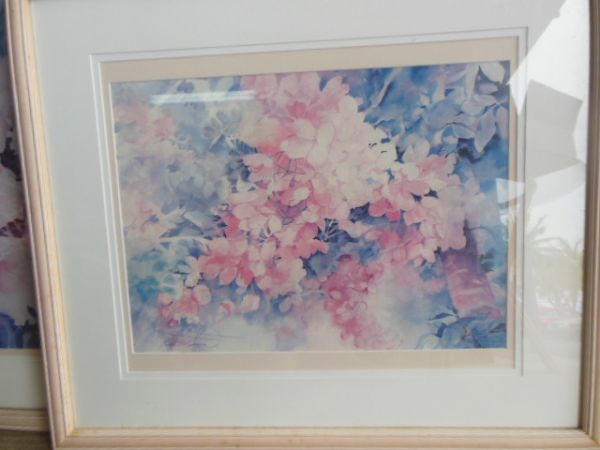 30'' x 26''H Pink and Blue Pastel Hydrangia.
