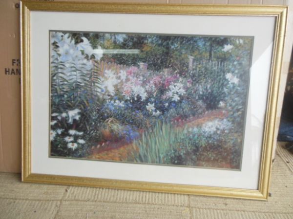 Garden Scene w/Lily Lined Brick Path and Picket Fence - Singley - 38.5'' x 28.5''H.