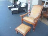 Antique Plantation Chair w/Extendable Arms and Footstool - Water Buffalo!.