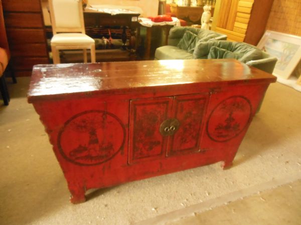 58.5''L x 18''D x 32''H Red Lacquer Asian Style Buffet.