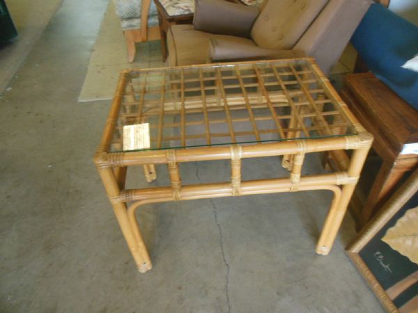 28'' x 20'' x 22''H High Quality Rattan Table w/Glass Top.