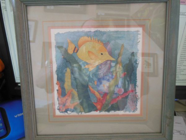 11.5'' x 11.5'' Linn Done Signed ''Tropical Fish I''.