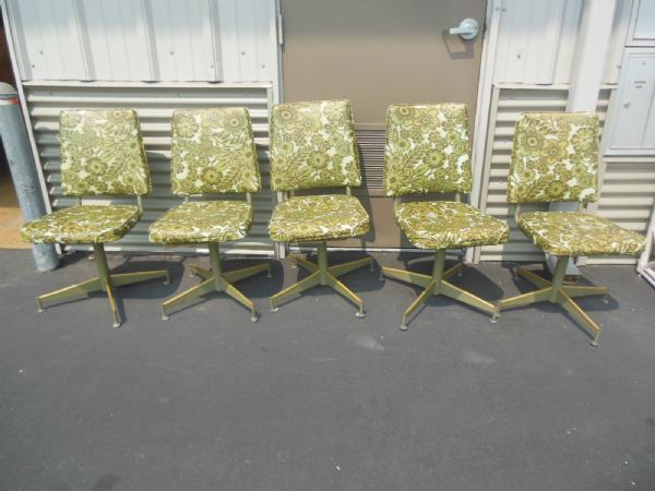 SET OF FIVE - Green Floral Swivel Kitchen Chairs.