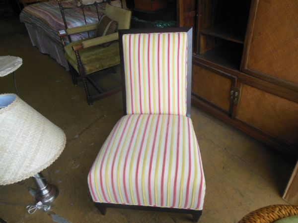 White, Pink, Green Striped Low Chair w/High Back.