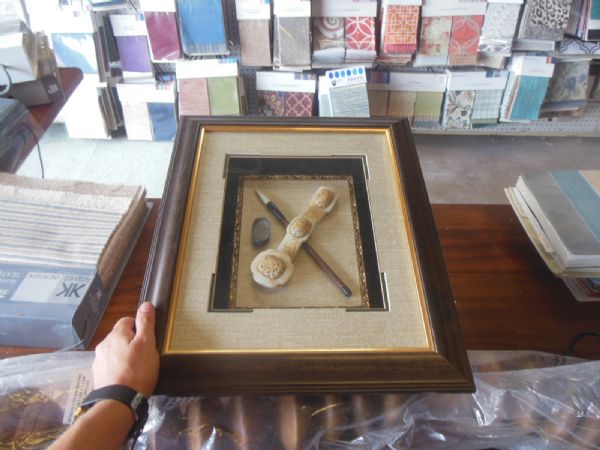 14'' x 17''H Shadow Box w/Asian Calligraphy Tools.