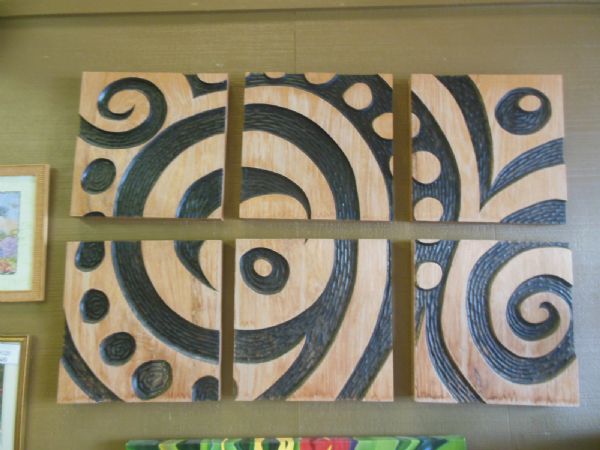 Polynesian Symbols Carved in Six 17.5'' x 17.5'' Wooden Panels.