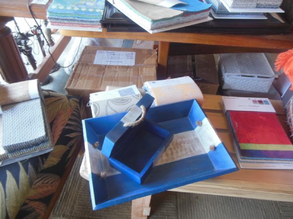SET - Blue w/White Stripe - 15.5'' x 12'' Tray & 4.5'' x 7.5'' x 3''H Box - with Rope Handles.