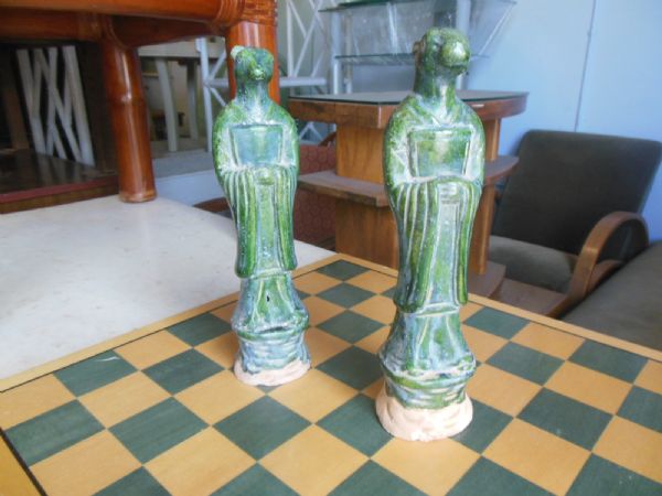 SET OF TWO - Green Porcelain Figurines w/Dog Faces.