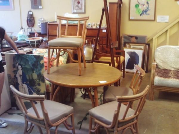 RATTAN DINING SET - 42'' Table w/Leaf and 4 Chairs.