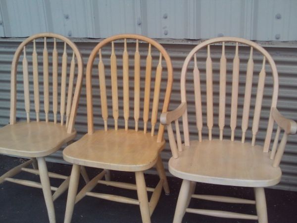 SET OF THREE - Two Armless Windsor Chairs, One Captain's Chair.