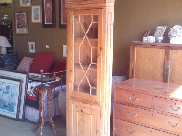 Corner Hutch w/13 Panel Glass Door - 27'' x 18'' x 75''H.