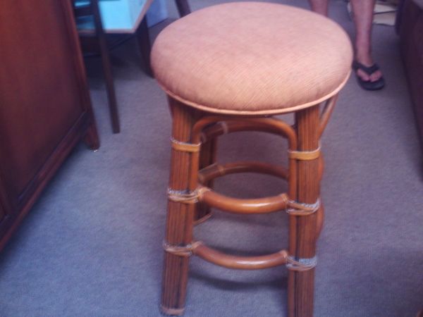 SET OF TWO -- Rattan Legged Barstools - need repair- 30''H .