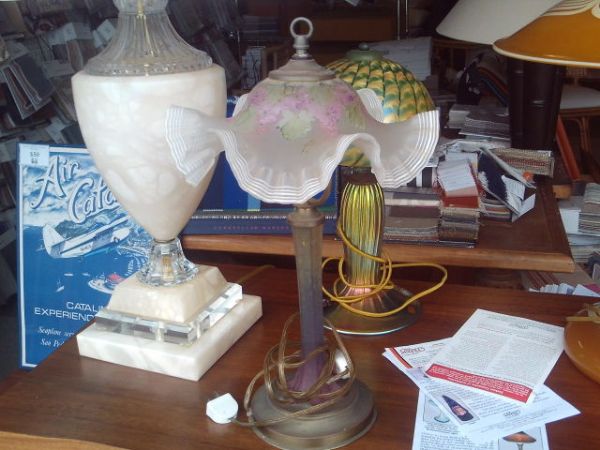 18''H Glass Lamp w/Signed, Hand Painted Shade.