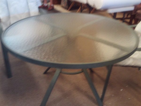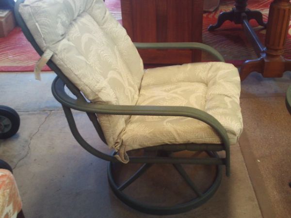 Tropitone Outdoor Table (48''dia) w/2 High Back Swivel Rockers & 2 High Back Chairs.