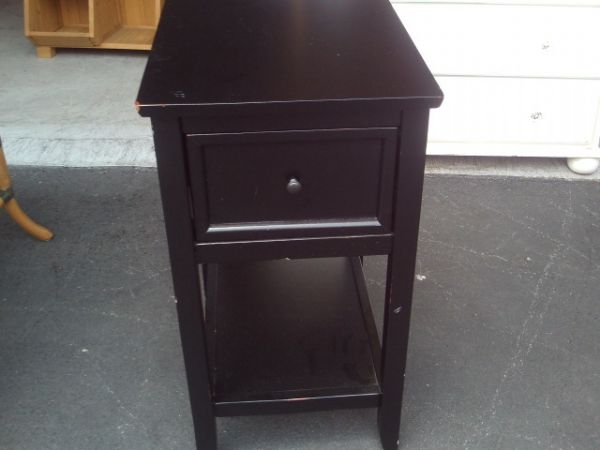 Black Wood Side Table w/Drawer & Bottom Shelf - Small Crack in Side - 14.5''W x 19''D x 27''H.