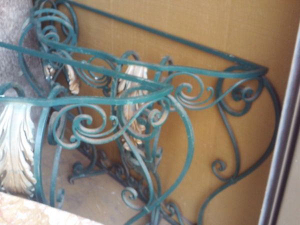 48''W x 16''D x 35''H Wrought Iron Wall Mount Table w/Marble Top.