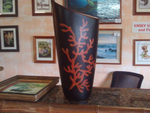 20''H Black Vase - Modern Shape w/Coral Design.