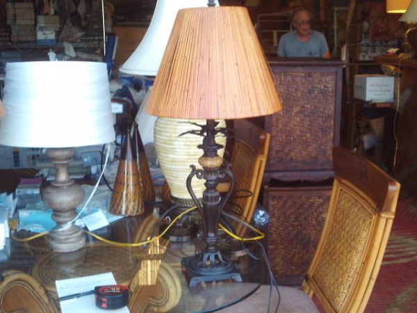 SET OF TWO - 30'' Metal Tropical Lamp w/Rattan Shade.