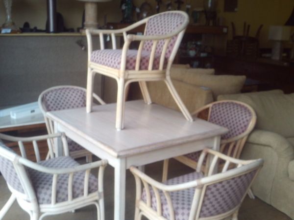 36'' x 40'' x 29''H Whitewashed Table w/Formica Top & 5 Rattan Chairs.