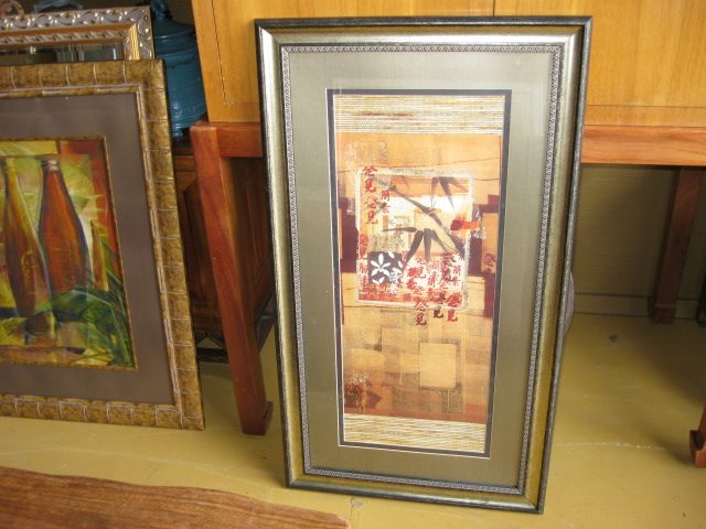 Framed oriental print with bamboo leafs ''41.5''x23.5''