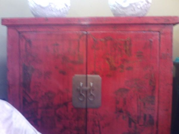 Red Painted Asian Armoire w/Flat Key & Drawers - .