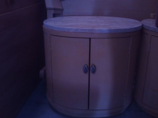 SET OF TWO - Blond Wood Oval Nightstand w/Marble Top - 30'' x 22'' x 28.5''H.
