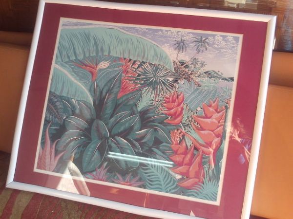 White Wood Framed Tropical Picture - 37.5''W x 32''H.
