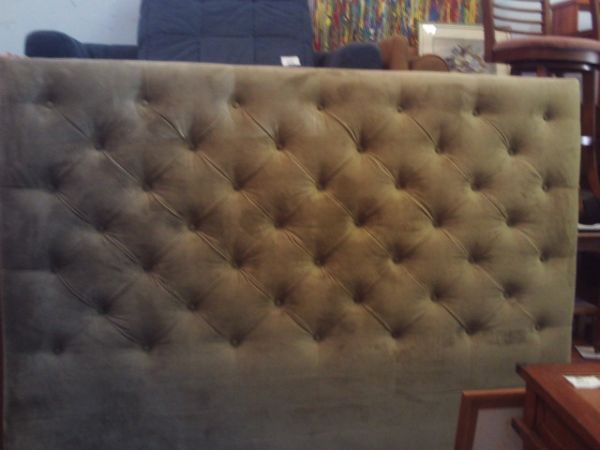 Regular King Upholstered Headboard w/Button Tufting - Sage Ultrasuede.