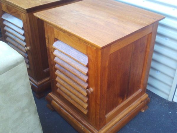 SET OF TWO - Koa Shutter Door Nightstands/End Tables w/Drawer Inside .