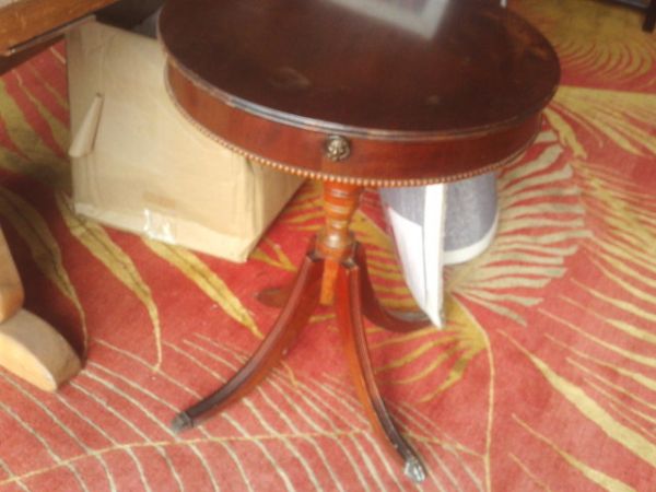 22'' x 26''H Round Wood Table w/Lion's Head Embellishments.