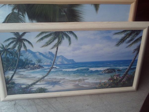 39'' x 22''H Beach w/Flowers and Palms Picture.