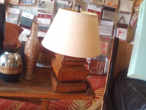 24''H Heavy Wood Lamp w/Shade and Wood Finial.