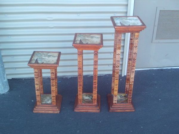 SET OF THREE - Decorative Stands w/Bamboo Print Top.